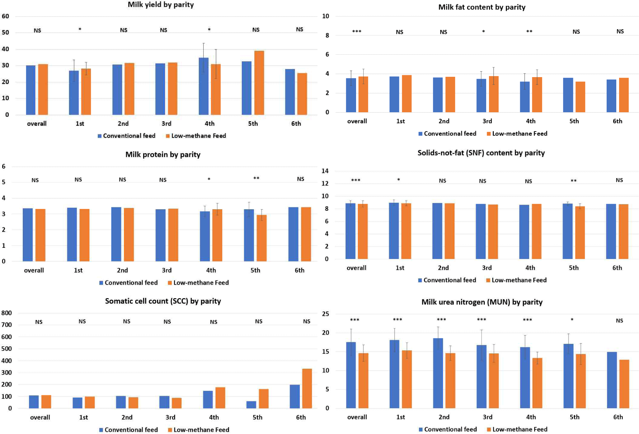 Effects of low-methane functional feed on parity-specific milk productivity and quality traits in dairy cows